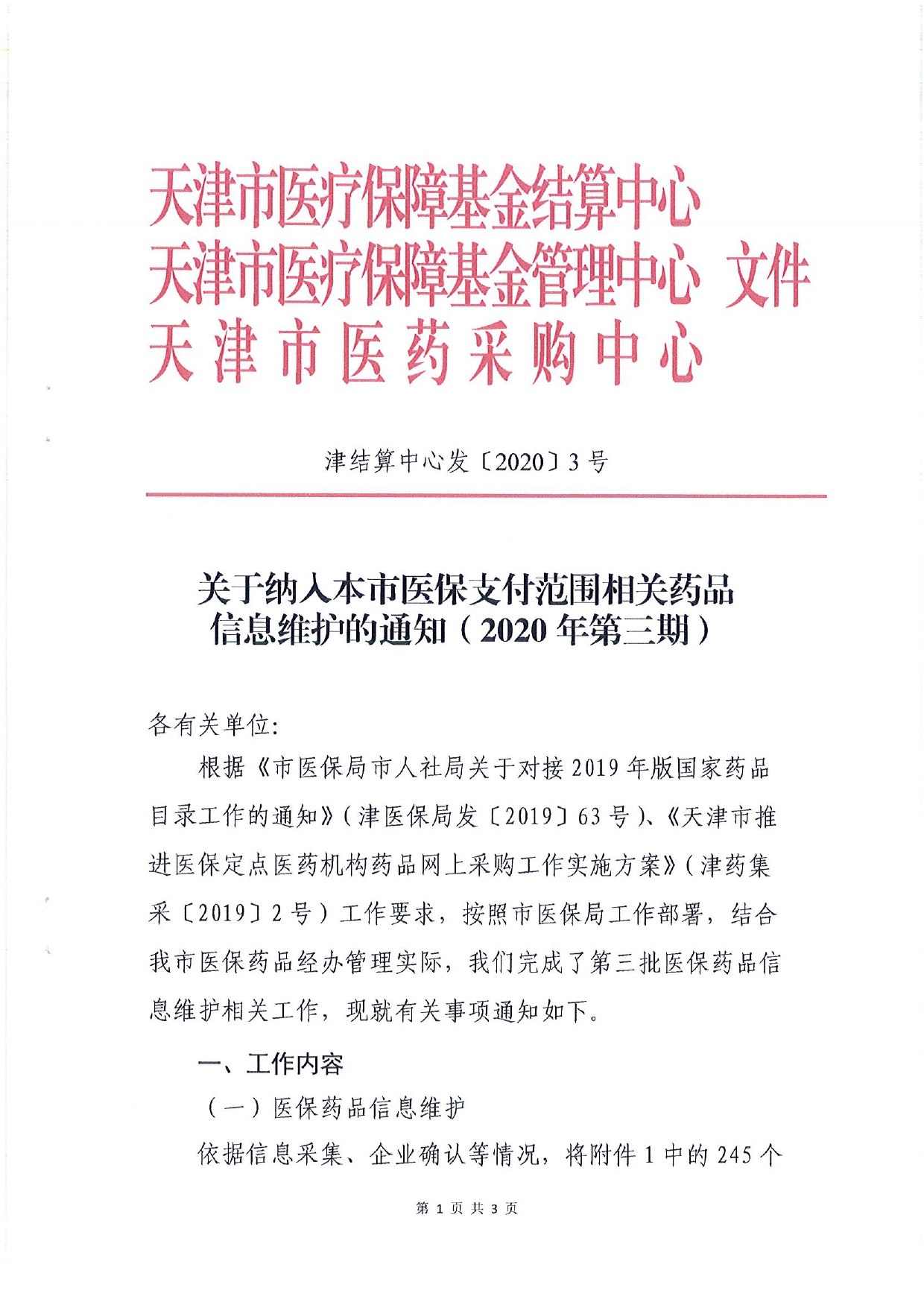 关于纳入本市医保支付范围相关药品信息维护的通知 (2020年第三期)